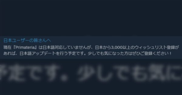 Steamのウィッシュリストに入れると通知がいって多言語対応もしてくれる可能性が上がる