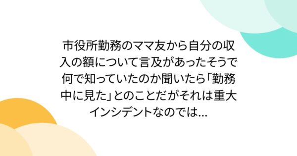 市役所勤務のママ友から自分の収入の額について言及があったそうで何で知っていたのか聞いたら「勤務中に見た」とのこと